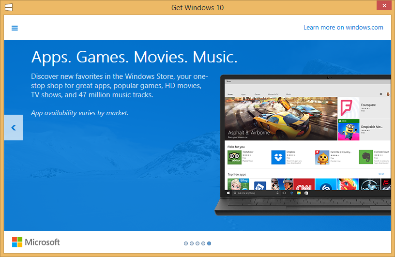 Вот такое уведомление появилось в трее моей основной рабочей машины с Windows 8.1 на борту. Думаю, первый день лета, неужели Microsoft решили обновить ОС на полтора месяца раньше? Не, просто возможность зарезервировать, установку можно будет выполнить, как только ОС выйдет.