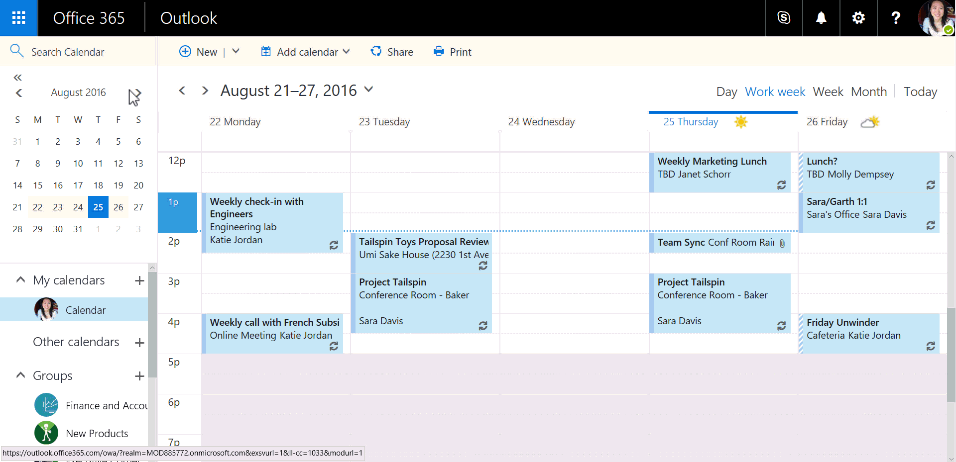 В Web версии электронного органайзера можно щелкнуть по определенному контакту и узнать больше информации о нем, в том числе и о организационной структуре компании в которой работает сотрудник. Также доступны файлы, которыми вы обменивались, свежие сообщения и общие собрания, если такие имели место быть.