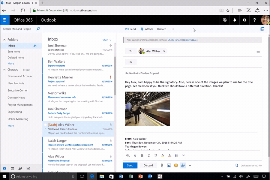 Запрос проверки контента на доступность пользователям с ограниченными возможностями в Outlook