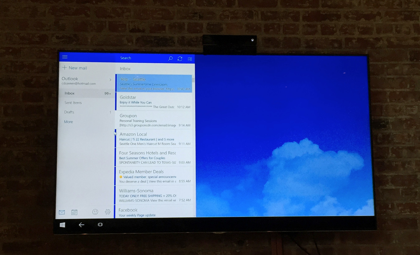 В Windows 10 mobile изображение не будет масштабироваться, экран телевизора будет использоваться в своем родном разрешении, на который можно будет выводить несколько окон универсальных приложений, например, Office mobile, Outlook и т.д. и, более менее, на сколько позволяют возможности самих приложений, работать.