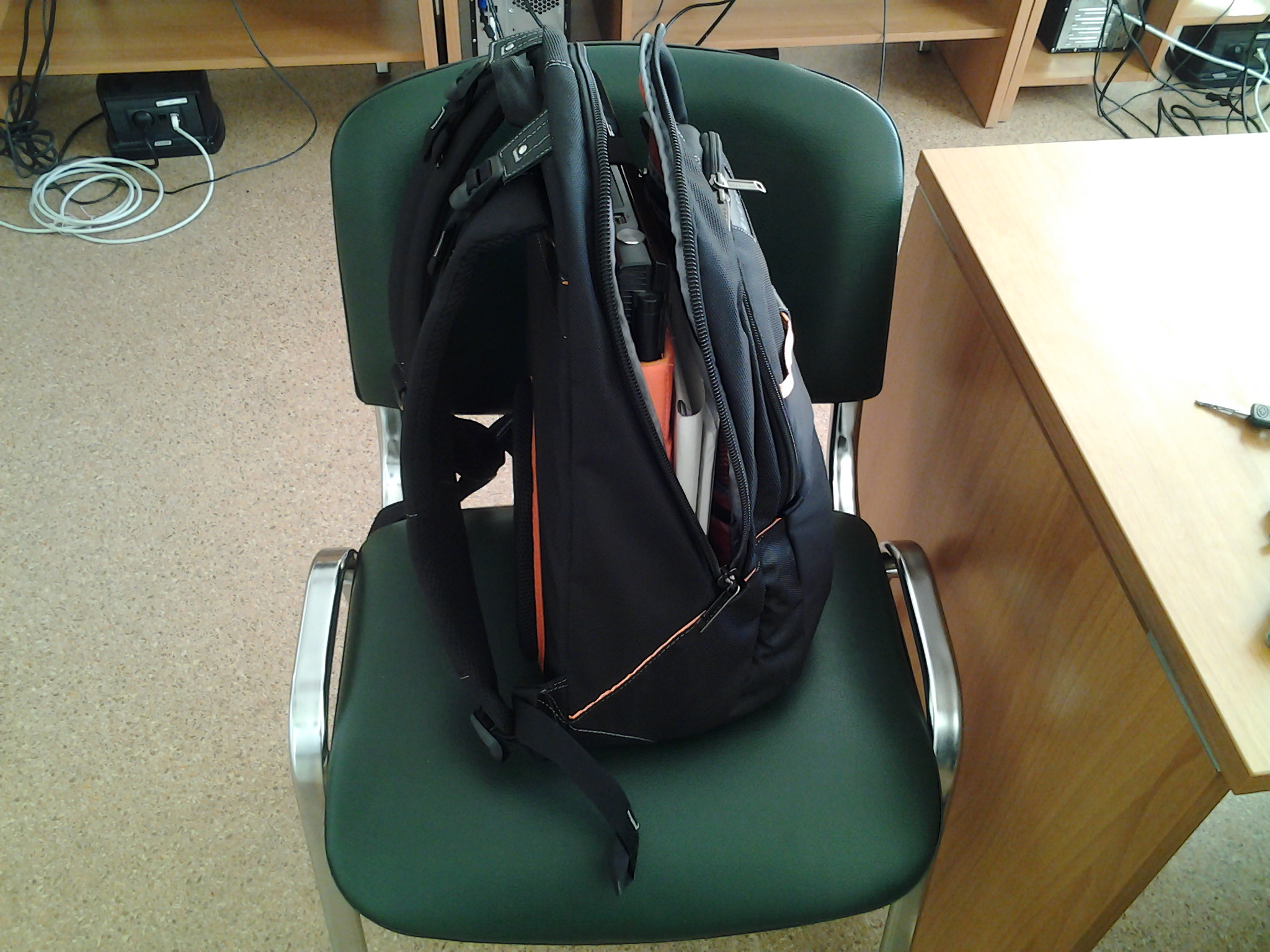 Если все ежедневное содержимое упаковать (ноутбук, блок питания, папка с документами, кошелек, лоток для еды, немного разной мелочевки), то получилось приблизительно во так: