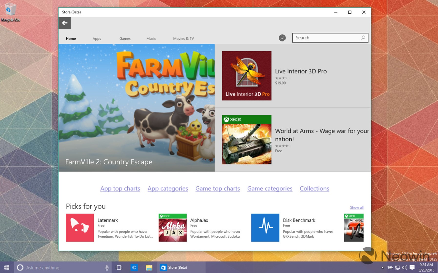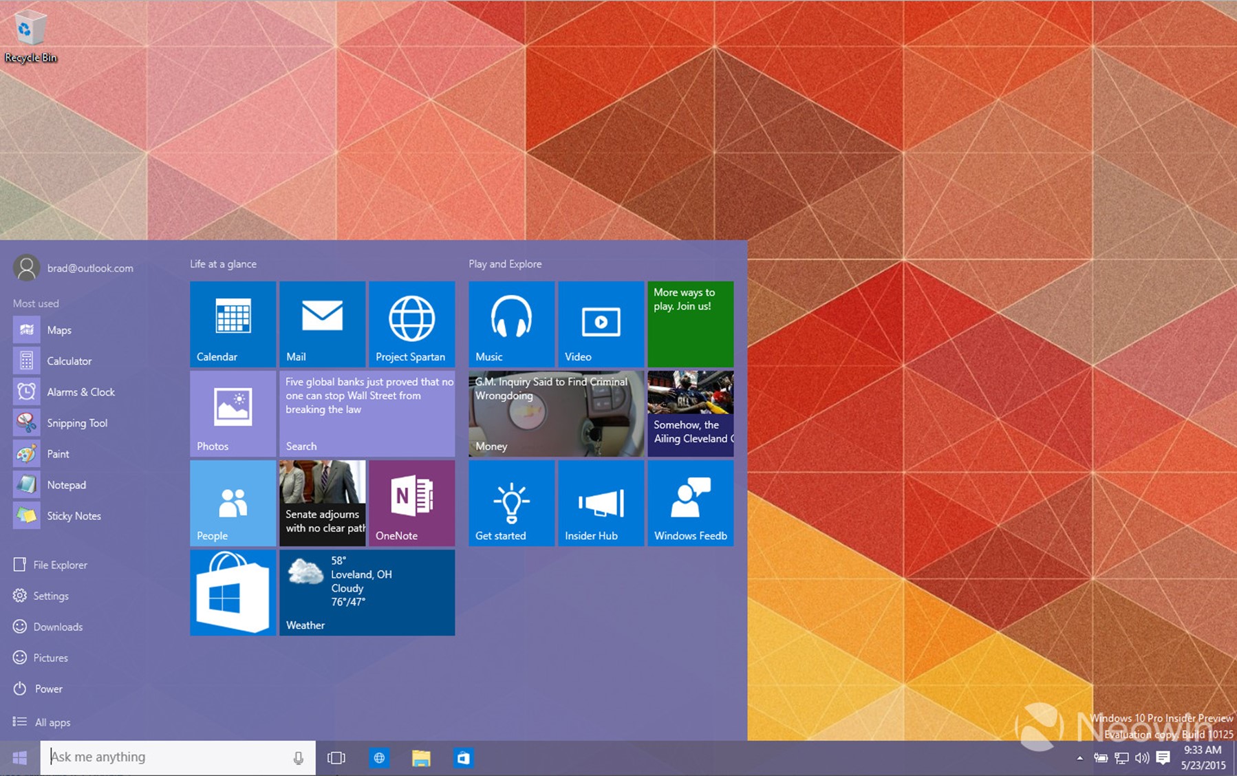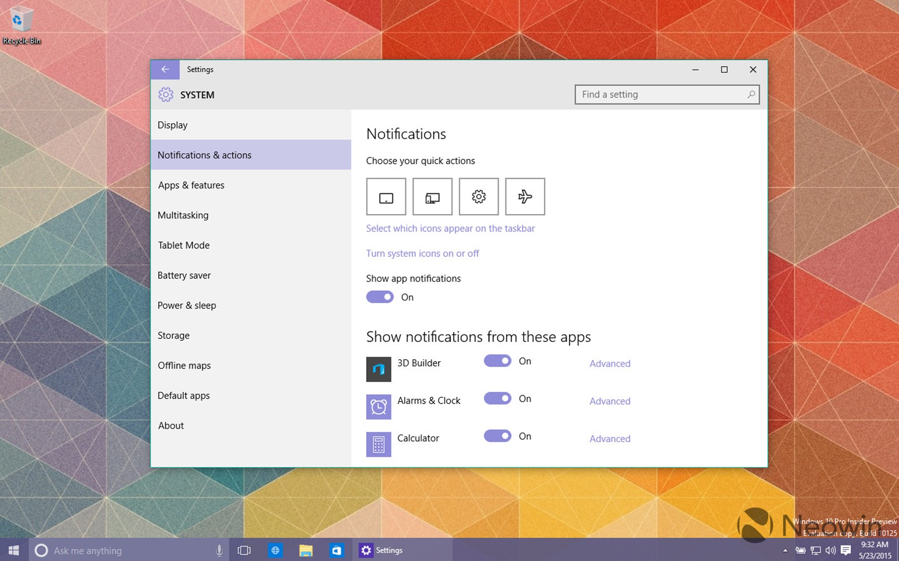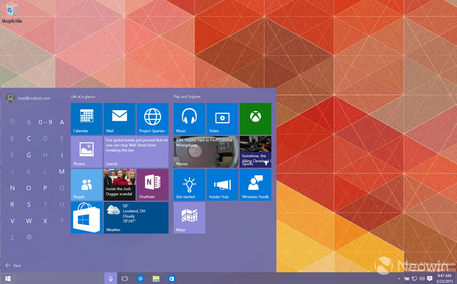 Новый билд будущей ОС от Microsoft привнес достаточно много обновлений в пользовательский интерфейс. В частности, были перерисованы иконки приложений, а также некоторое другие элементы пользовательского интерфейса, например, во время закачки определённого файла из всемирной паутины, индикатор прогресса отображается в вертикальном положении, а не в горизонтальном. Кстати, в нашем обзоре, в котором изменения пользовательского интерфейса были оценены очень положительно (в сравнении с Windows 8.1), спорным моментом были названы иконки стандартных приложений.
