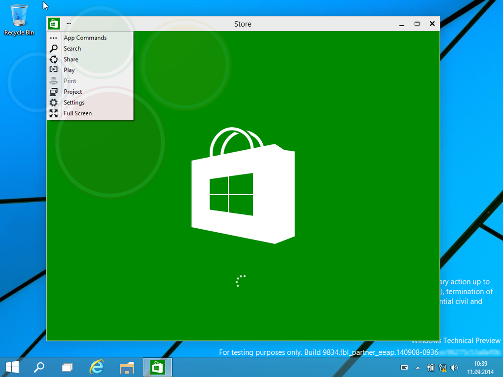 Элементы рабочего стола немного изменили свой дизайн, иконки приложений стали более плоскими в стиле metro-приложений. Кроме того, судя по скриншотам, теперь Metro-приложения могут работать не в полноэкранном режиме, то же касается и настроек персонального компьютера.